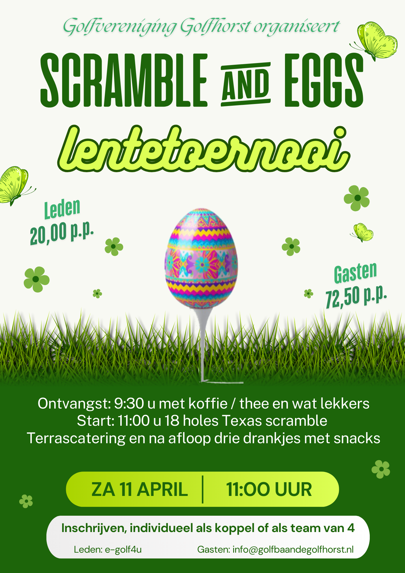 We starten op zaterdag 11 april het toernooiseizoen op de grote baan met smakelijke en sportieve Scramble & Eggs-editie.